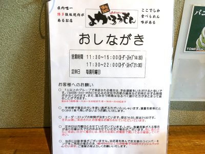 お店のおしながきです。県内唯一の博多鉄板焼肉店と書かれていました!