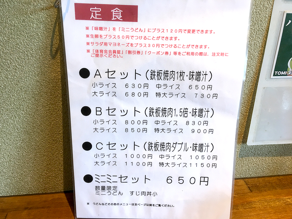 単品もありますが、基本は定食セットが主のようで、肉のボリュームによって違う、3つのセットが用意されています。