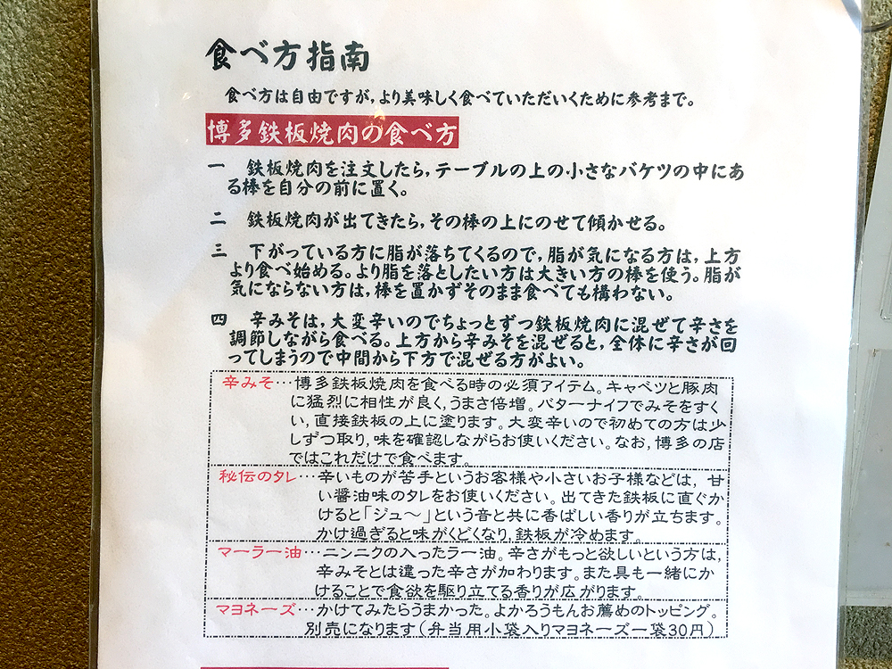 お店では、初めての人のための“食べ方指南”も準備されており、初めて食べる人は迷ってしまうかもしれないので、ありがたいですね!