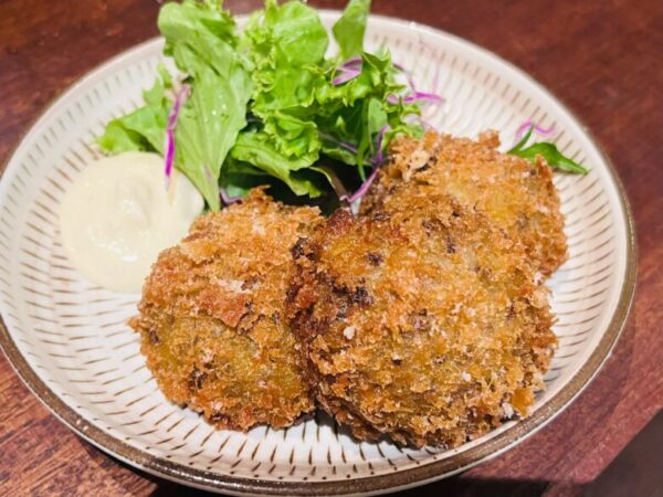 最後は、里芋で作られたコロッケ。中には馬肉が入っています。ねっとりとした里芋に、ぷりぷりとした馬肉。あまり見かけない組み合わせですが、めちゃくちゃ合います!