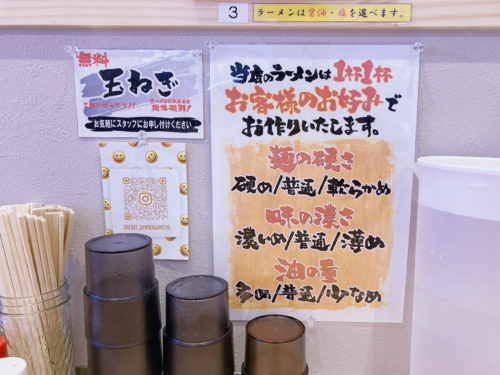 この時に、店員さんからラーメンの好みを聞かれるので事前に決めておきましょう。麺の硬さ、味の濃さ、油の量を選べます。