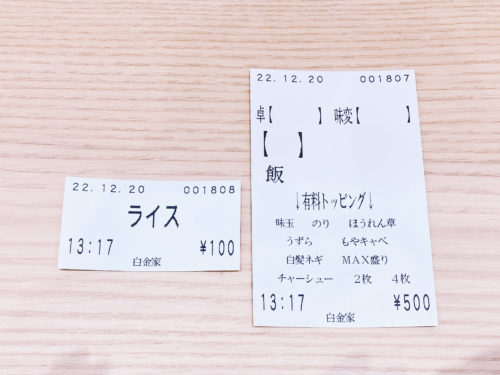ラーメンがやってきました。ライスと一緒に食べるのがおすすめらしいので、ライスも追加です。