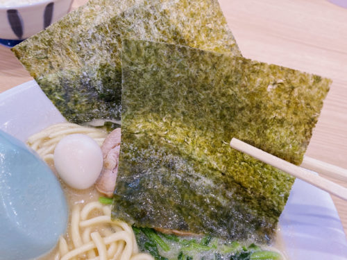 トッピングの海苔が好きな方には朗報!大判の海苔が3枚も。スープに浸して食べると最高。