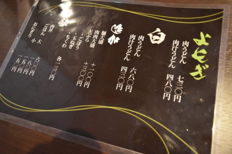 「小倉名物 よもぎ肉うどん 元祖木村家 下通店」。店名によもぎ肉うどんと入っているならば、注文するしかありません。