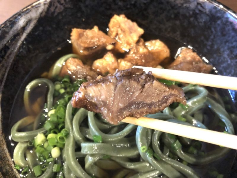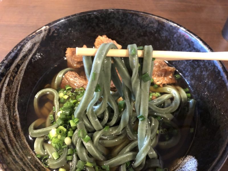 緑色が鮮やかなよもぎ麺!「よもぎ肉うどん」を実食