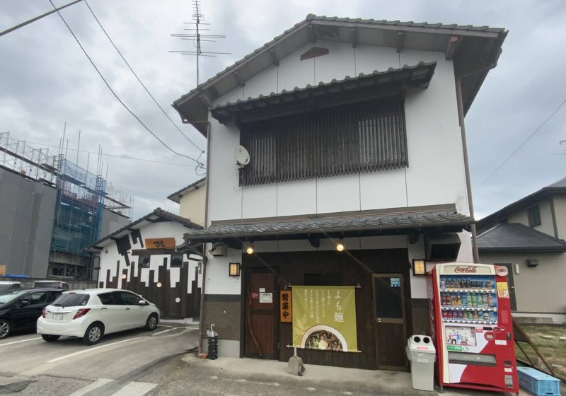 旧57号線を走り、大津郵便局から入ったところにある「よも麺と居酒屋てんき」。左奥が居酒屋で、右側がよも麺です。