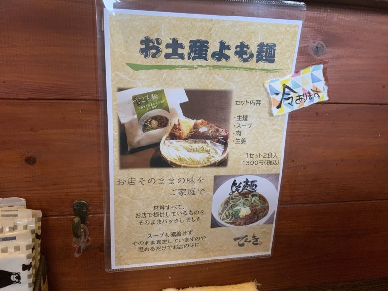 このよも麺、お持ち帰りもできます。以前は年末など期間限定で出していたそうですが、現在はいつでも手に入るそう。年越しそば代わりに2000食売れたこともあるそう。