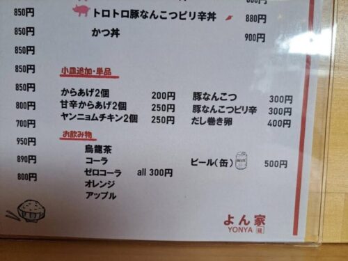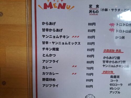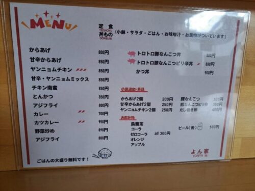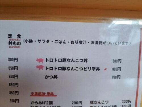 メニューは定食と丼ものがあります。