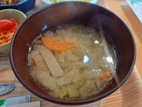 野菜たっぷりのお味噌汁や