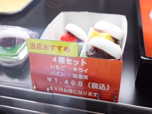 フルーツ大福が全種類入ってちょっとおトクな「4種セット」(1,400円)を買って実食。