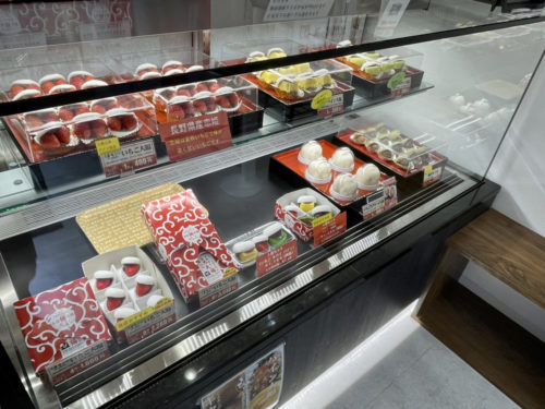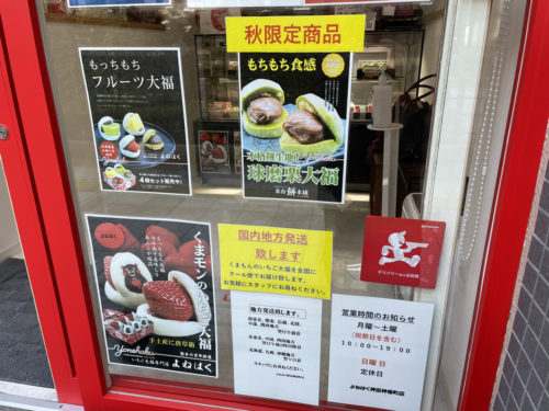 熊本の米白餅本舗ではお赤飯やお餅類がいろいろ揃うのに対して、神保町ではフルーツ大福の専門店として営業しています。
