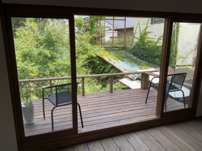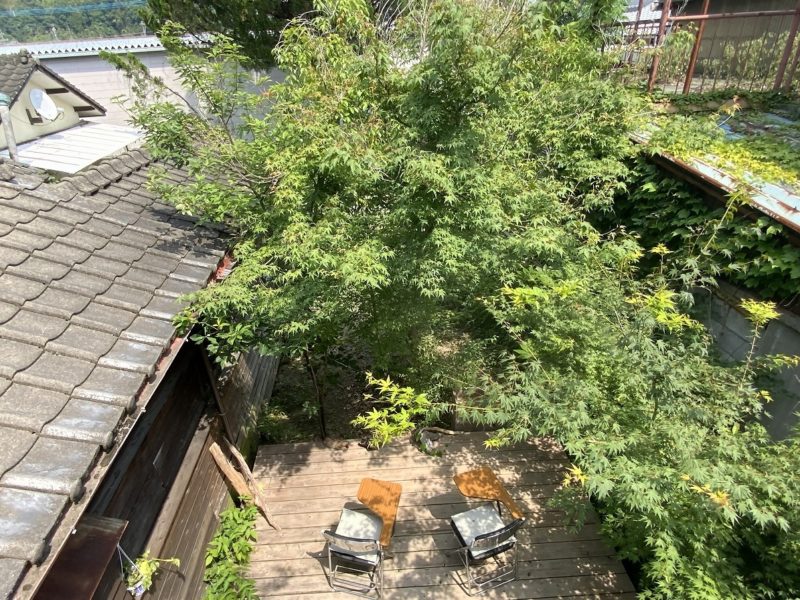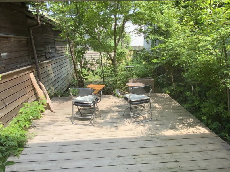 建物の裏手に、めちゃくちゃ気持ちの良い庭があるんです。草が生い茂っていますが、決して無造作な感じではなく、いい意味で夏の庭といった感じでした。