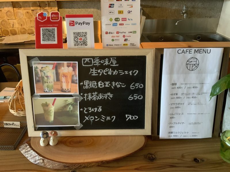 コーヒーやお茶、タピオカなどを提供しています。オススメは季節のタピオカだそうで、今はメロン。もうすぐはちみつレモンになるそうです。めっちゃ食べ(飲み?)たい。