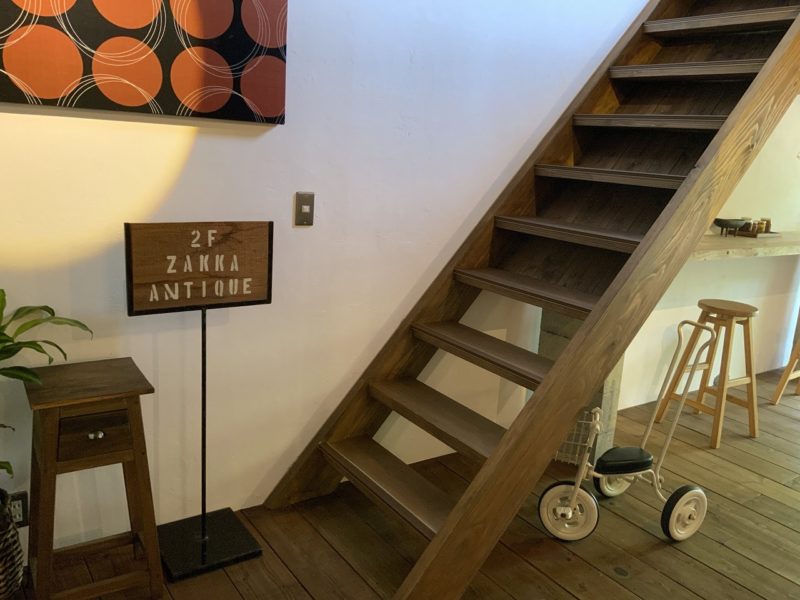 「2階にもアンティーク雑貨があるので、見ていってくださいね」と案内されたので、いざゆかん。