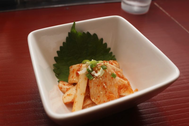 「山芋のキムチ(税別390円)」。山芋のシャキシャキ感とキムチの辛味が良い感じ!