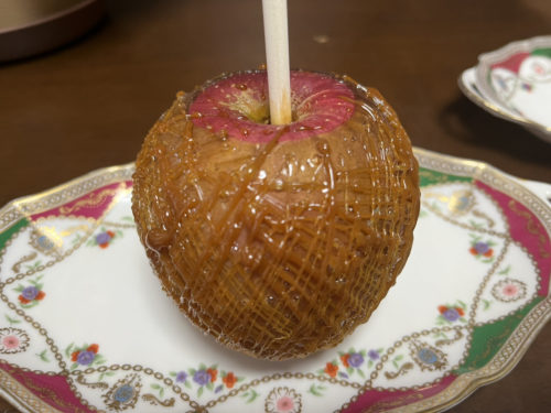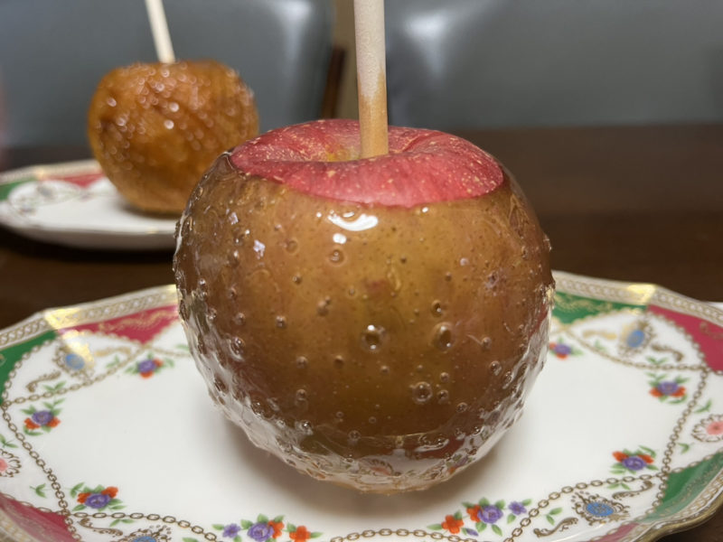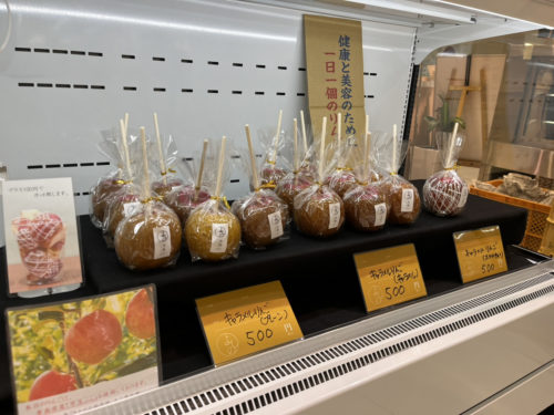 りんごのみずみずしさや香りが脳裏に焼き付いて離れない!と言っても過言ではないほど、衝撃的なりんご飴と出会いました!りんご飴は、りんごが旬の時期(4月下旬もしくは5月上旬ぐらいまで)だけの期間限定販売とのこと。