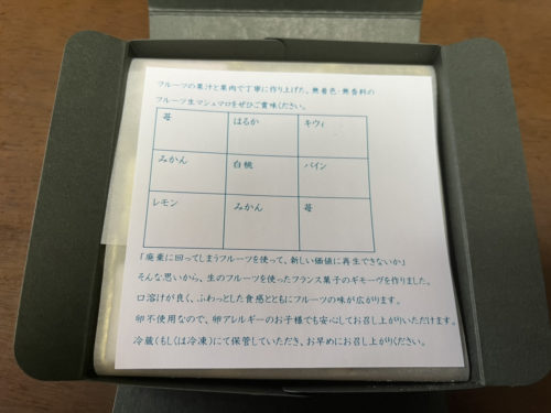 フルーツの果汁と果肉で丁寧に作り上げた、無着色・無香料の生マシュマロも実食!(税込600円、要冷蔵)