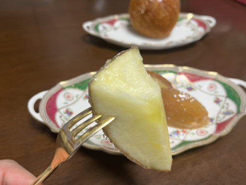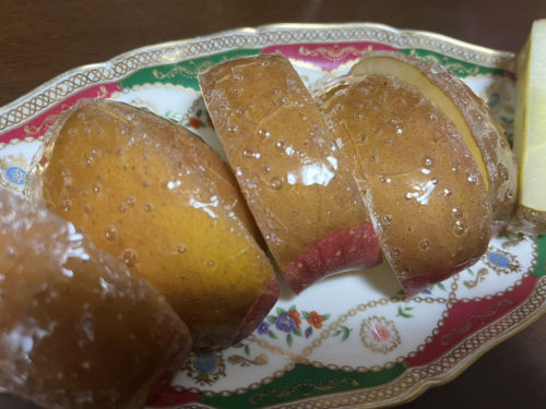 通常のりんごと同じような感じで、くし形切りにして食べました!
