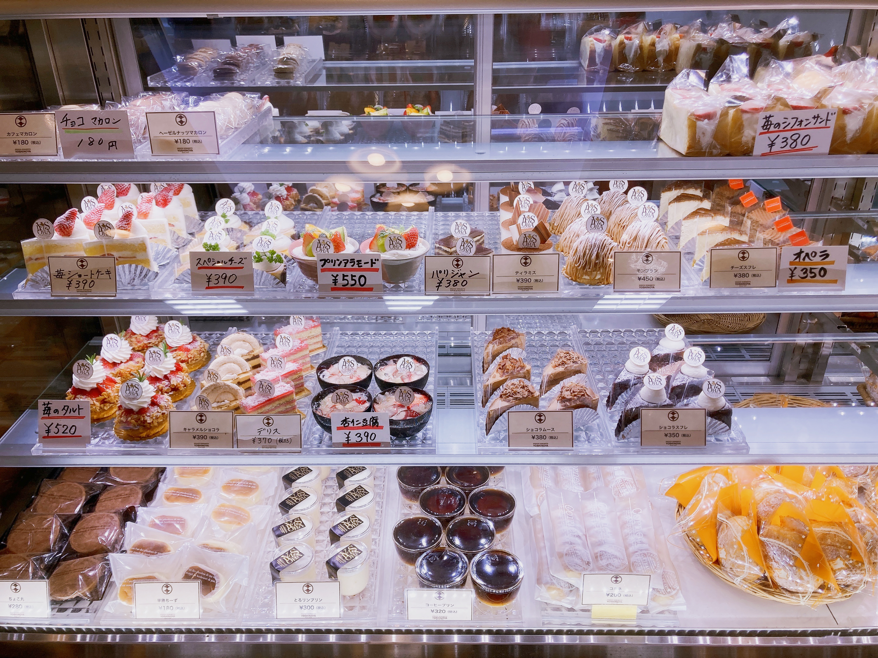 お店の中に入ると、大きなショーケースが。その中には色んな種類のケーキがあります。