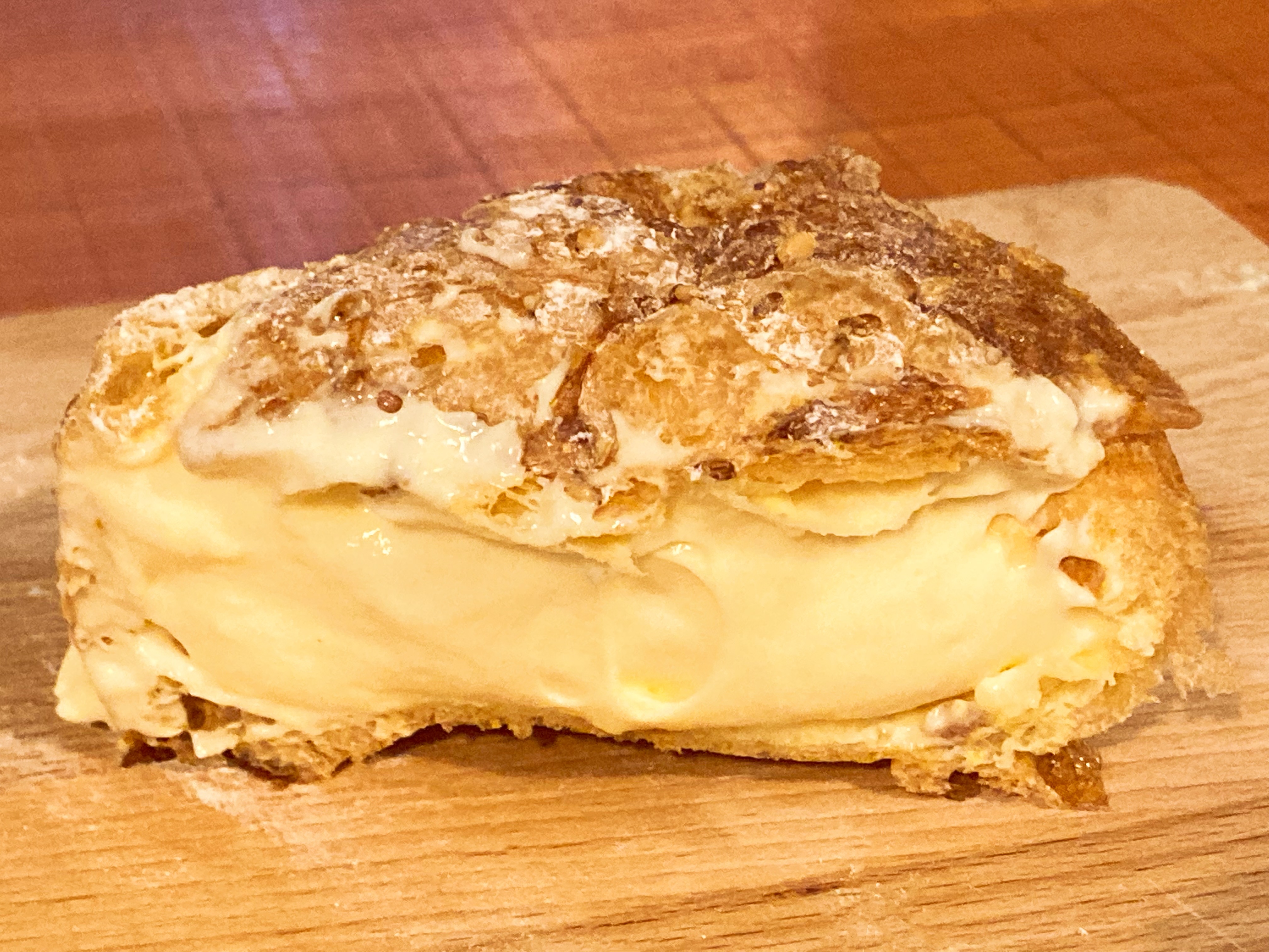 シュー生地はふわふわなので、優しい。おふとんのように優しいシュークリーム。