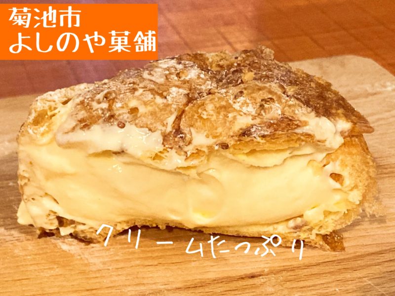 クリームたっぷりで後引く美味しさ。菊池市にある「よしのや菓舗」のシュークリームはコスパも良いし、疲れた身体を癒してくれる。