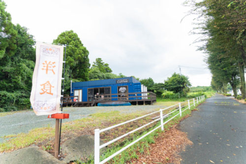 コンテナタイプの青い建物が特徴的なお店。