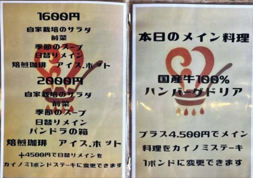 4パターンで毎日メインメニューが変わる洋食炎陣さん。