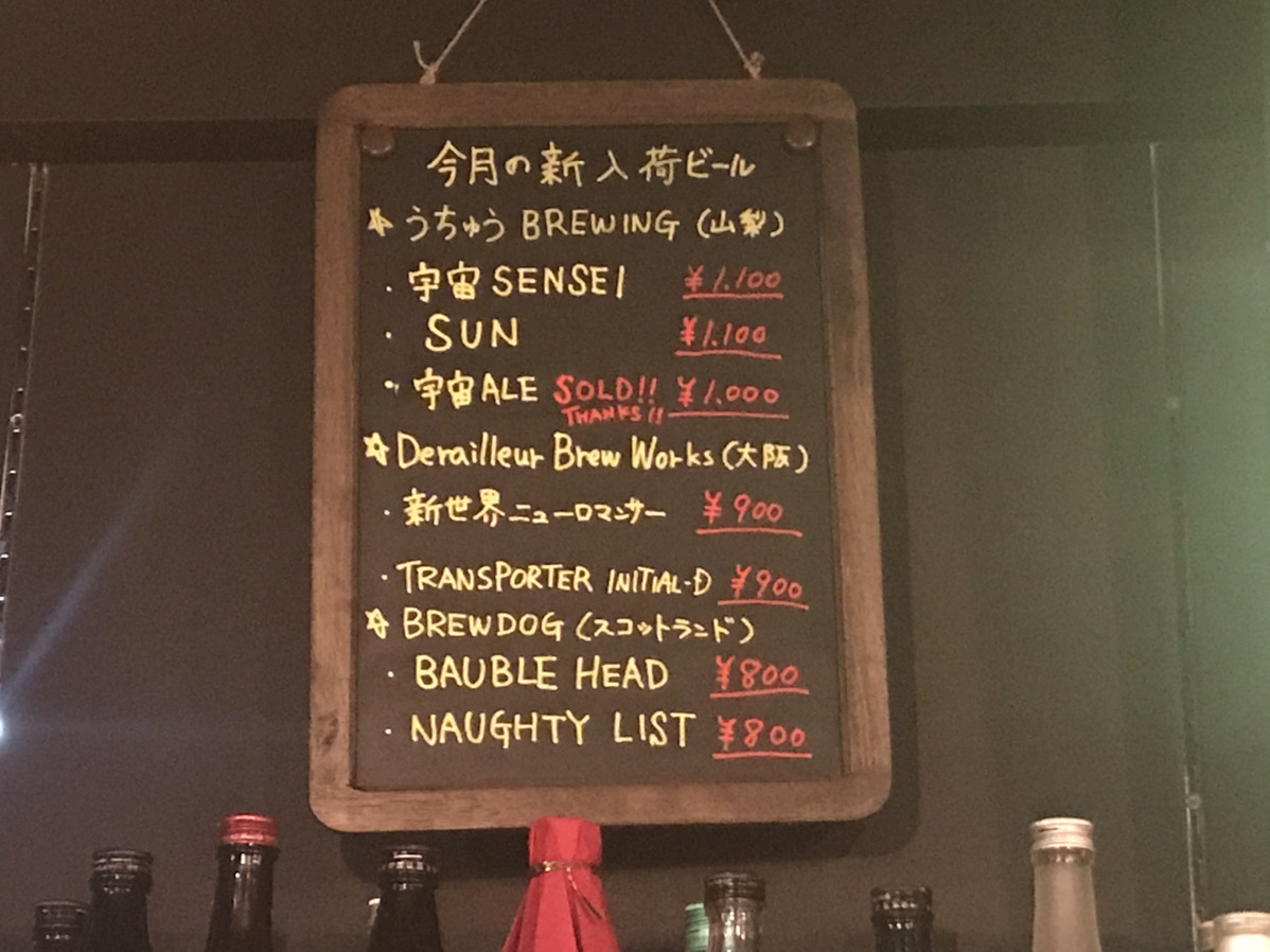 「ビールは生ものなので、同じ銘柄でも時期などで味が変わるんです、これ(うちゅうビール)が飲めるのは全国で数店舗。飲みたくて各地からお客さんが来ます。でも…女性は特に、怖い店なんじゃないかと躊躇されることがあります(笑)」
