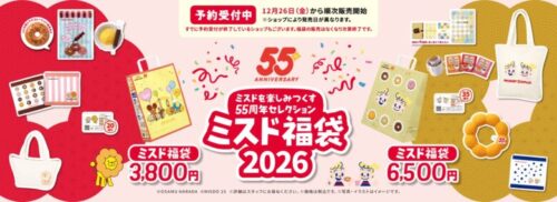 ご存じミスドの福袋。お値段は3,800円と6,500円の2種類です。