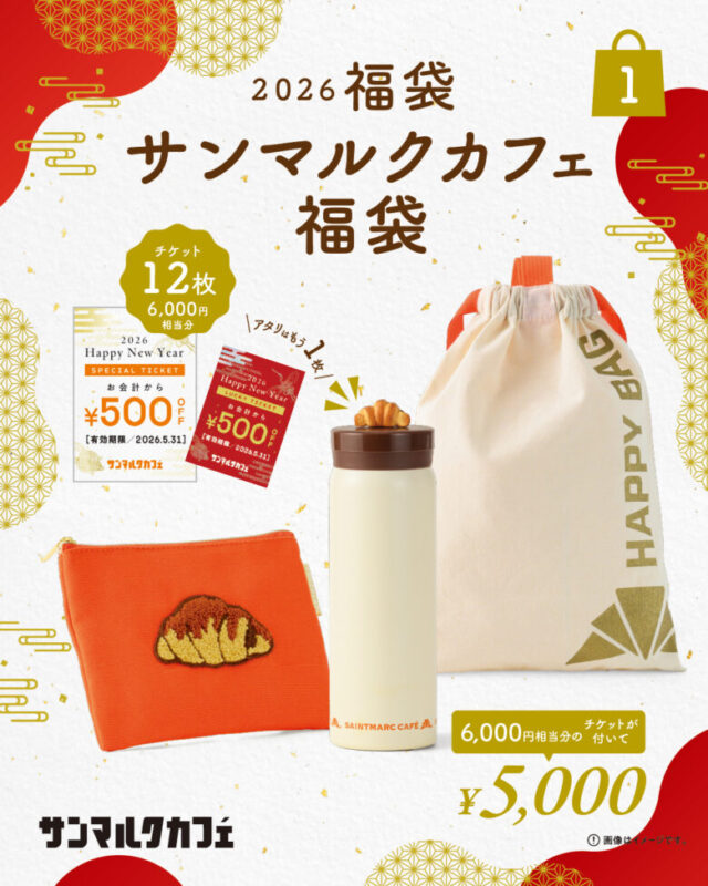 5,000円の福袋なのに6,000円分のチケットがついてくるわ、チョコクロのかわいいタンブラーついてくるわ、ポーチもあるわで、こりゃ争奪戦必至な福袋ですね。