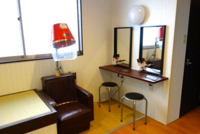 このスタンド式ヘアドライヤーも銭湯の必須アイテムのひとつ。