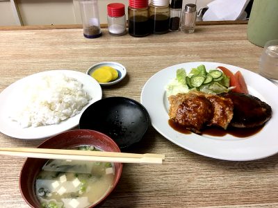 ハンバーグも肉汁もあって柔らかい。デミグラスソースがまた懐かしい味わいを思い起こさせます。