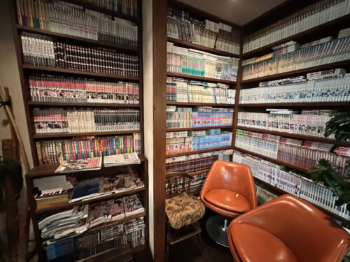 サラリーマンの方が来られて読まれるそうで、お客さんが持って来たマンガもあるそう。