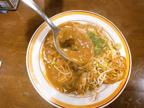 カレーそばめしへと変身。ここからはスプーンでいただきます。