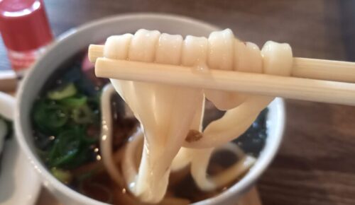 こちらは馬すじうどん。麺はもちもち、お肉はほろほろ。一味のピリッと感が合う~!