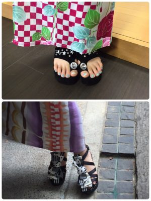 レンタルは浴衣、帯だけですので、履物は自前で準備しなければなりませんが、個人的には浴衣にサンダルがおすすめです!