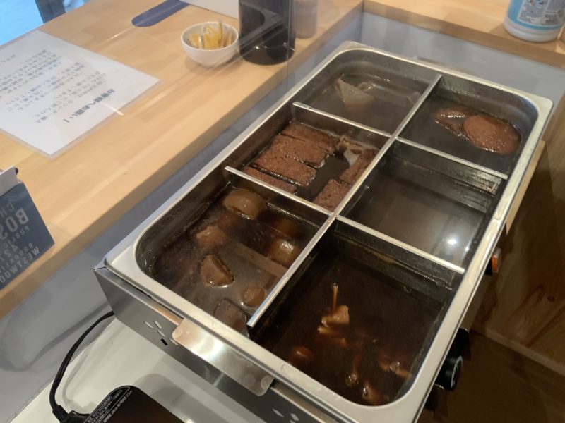 おでんは6種類。ランチはここから3種類選べ、足りなければ単品で追加してOK。追加する人も多いから、内容変えて量を増やすことも検討中だそう。