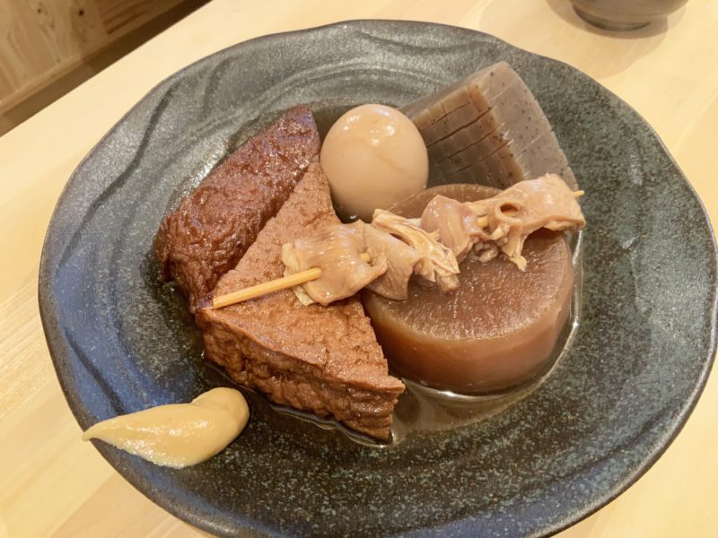 おでんは関東炊きで、めちゃくちゃ染み込んでいます。