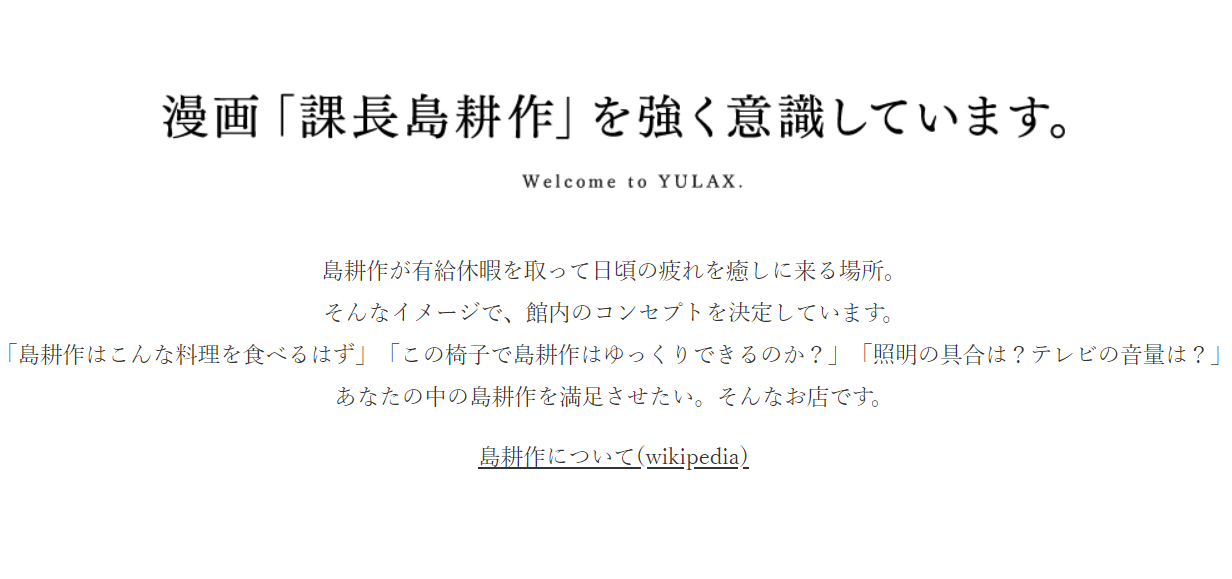 島耕作が有給休暇を取って日頃の疲れを癒しに来る場所。というコンセプトでお店を作りました。