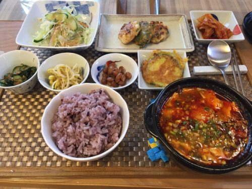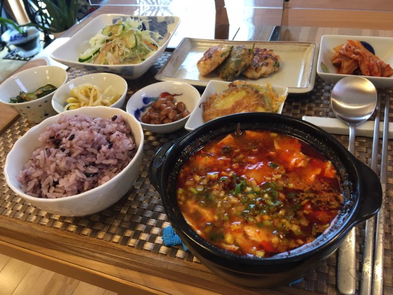 こちらはスンドゥブのランチですが、ご飯やスンドゥブのほか、焼き物もついて、さらにキムチ、ナムルなど、小鉢がいっぱい…!!思わず、「うわぁ~!おいしそう!」っと声が出るほど。