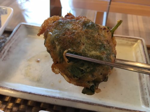 この日は、ひき肉をエゴマの葉に包んだものとエビのジョンがありましたが、どちらも香ばしくて、お肉やエビのうま味たっぷり!王様気分を味わいながらいただきました。