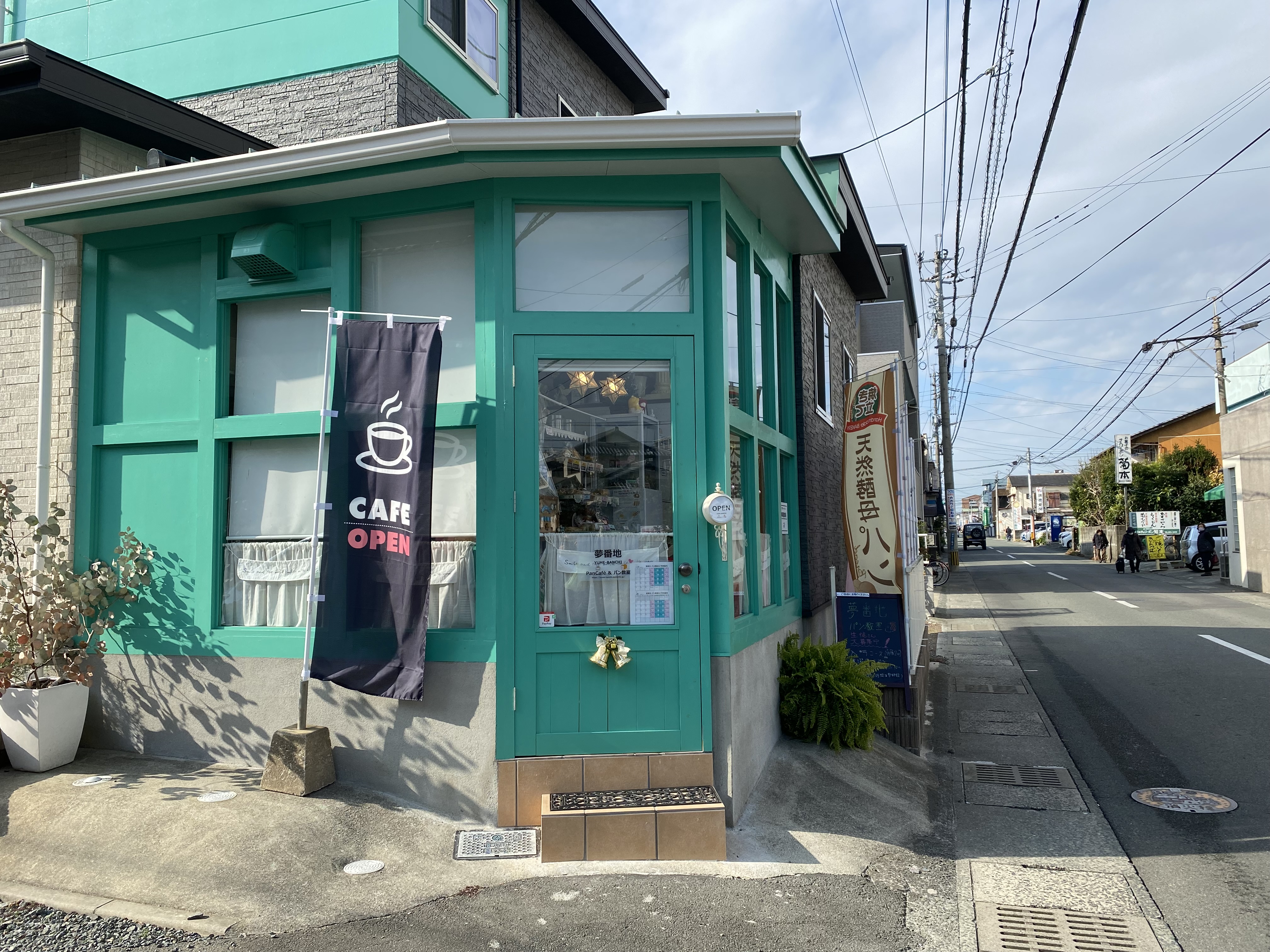 八王寺通り沿いの国府高校のそばに「天然酵母パン」と書かれたのぼりと緑の外観が目印。