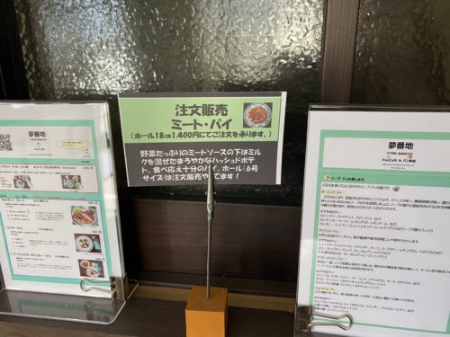 事前予約でミートパイも食べられます。野菜たっぷりのミートパイもおいしそう!