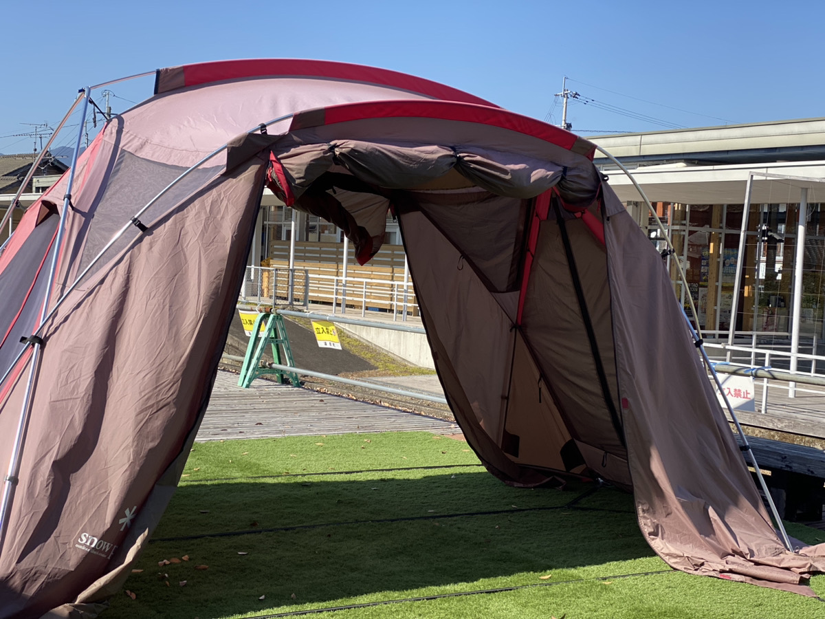 店舗外には人工芝やテントも。