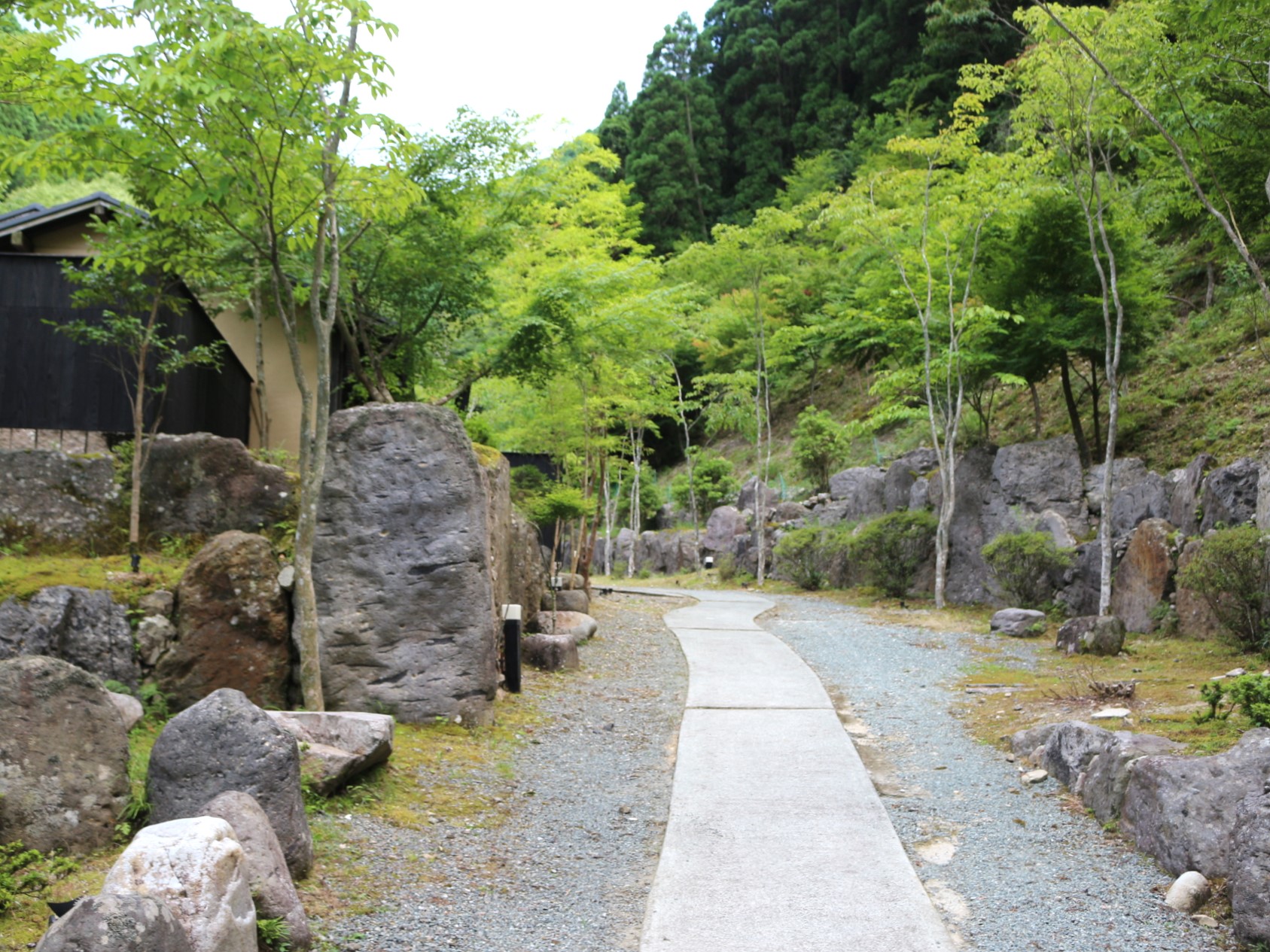 駐車場に車を停めて、この自然豊かな小道を歩いていきます。敷地内に入ると鼻をかすめる硫黄の香り。期待がむくむくと膨らみます。