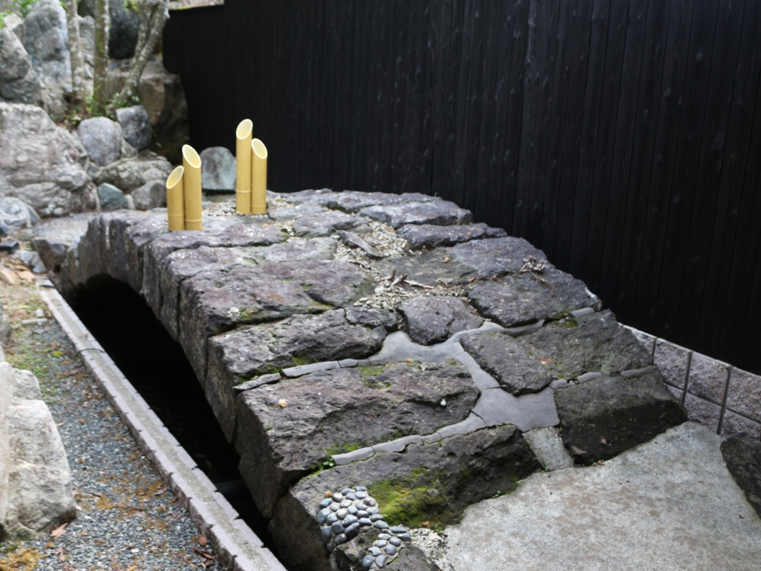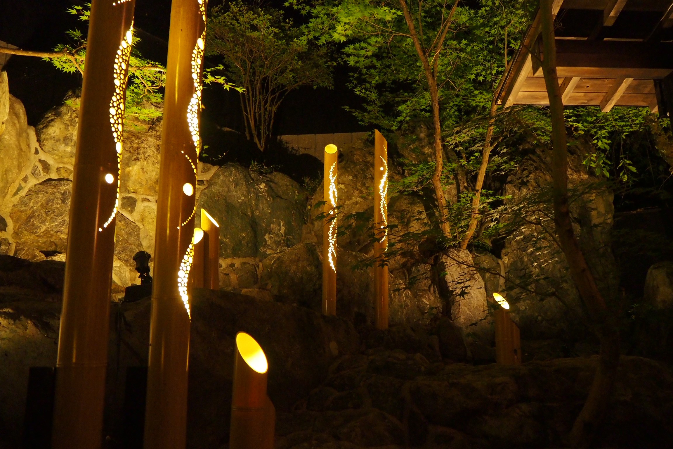 敷地内や温泉には、竹あかりの装飾が至るところにあります。