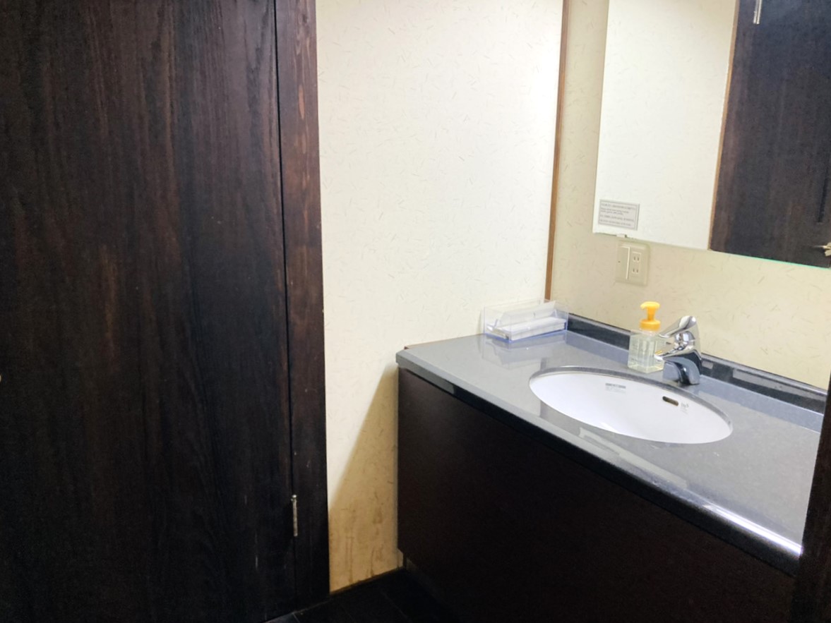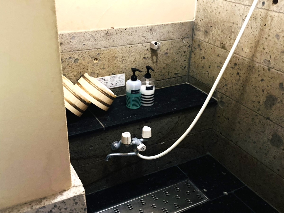 さらに、周りが囲まれた洗い場があります。シャンプー&トリートメントが完備されているのがうれしいですね。