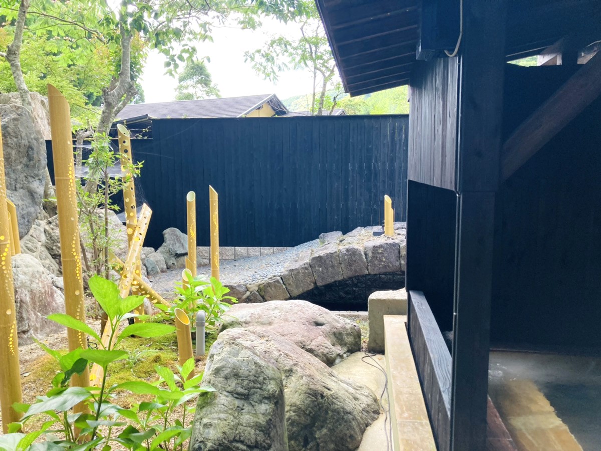 温泉に入ると、目の前に見える庭の景色にとっても癒されます。