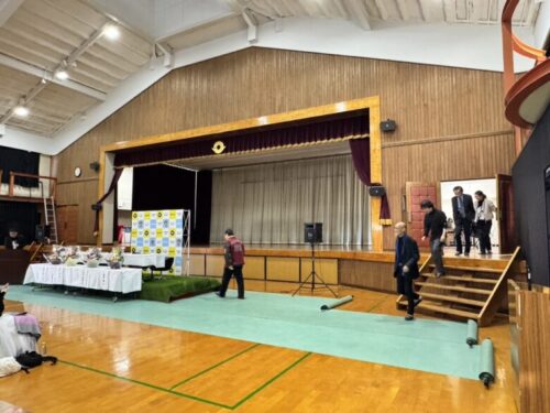 小学校の体育館のようなところです。