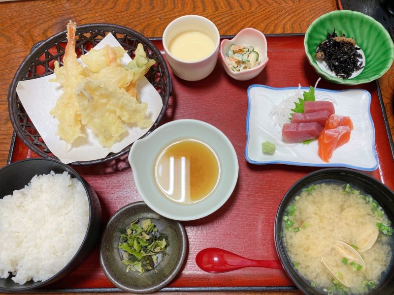 この日の日替わり定食は天ぷらでした!8品もついて770円!ごはんのおかわりもできますよ。